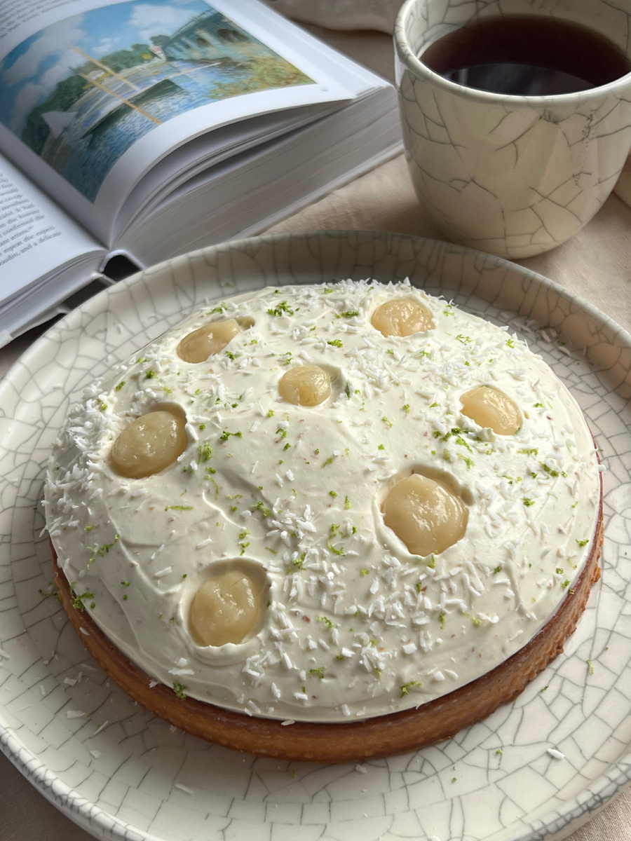 Сделал тарт по рецепту знаменитого французского кондитера. Очень люблю его относительно несложные рецепты. Обязательно подписывайся, чтобы не пропустить другие рецепты Ингредиенты (на кольцо 18х2 см): Песочное тесто ⠀ 1. Смешайте муку, миндальную муку, пудру и соль, порубите масло на кубики, добавьте в смесь и руками доведите до подобия хлебных крошек, добавьте перемешанное яйцо, замесите, переложите на пергамент, сверху еще один, раскатайте до 3 мм, уберите в холодильник на 1-2 часа, кольцом сделайте основу тарта, переложите на коврик (пергамент) кольцо и в него основу, если выпало. С помощью линейки и ножа (лучше для пиццы) вырежьте стенки тарта, приклейте ко дну и стенкам, ножом отрежьте выпирающее. Уберите в морозильник на 20 минут. Разогрейте духовку до 165 С, пеките 15 минут. Смешайте 20 гр желтка и 5 гр сливок 30-35%, обмажьте тарт внутри и и стенки, пеките 5 минут. ⠀ Кокосовый бисквит ⠀ 1. Белки взбейте до однородной пены, всыпьте часть сахара, через время добавьте еще, взбив