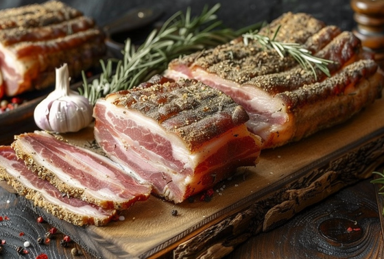Существуют надежные способы, как выбрать грудинку в магазине. Ориентироваться стоит не только на внешний вид самого мяса, но и на состояние упаковки и указанные в составе компоненты. Первое, на что следует обратить внимание, — название. Грудинка бывает копчено-вареной и варено-копченой. Более полезным считается первый вариант. Это связано с тем, что в ходе приготовления копчено-вареной грудинки выделяется меньше вредных веществ. Второй шаг — прочитать состав. В нем не должно быть ароматизатора «дым». В ином случае это значит, что мясо не коптили, а подвергали обработке жидким дымом. Скорее всего, такой продукт будет иметь менее насыщенный вкус, чем грудинка натурального копчения. Третий способ выбрать мясо — по срезу. Он должен быть ровным и чистым. Капли на срезе грудинки являются плохим признаком. Посмотрите на цвет прожилок — он должен быть розовым, в то время как цвет шпика — белый с кремовым полотном, приобретаемым при натуральном копчении. Не забывайте проверять свежесть продукта