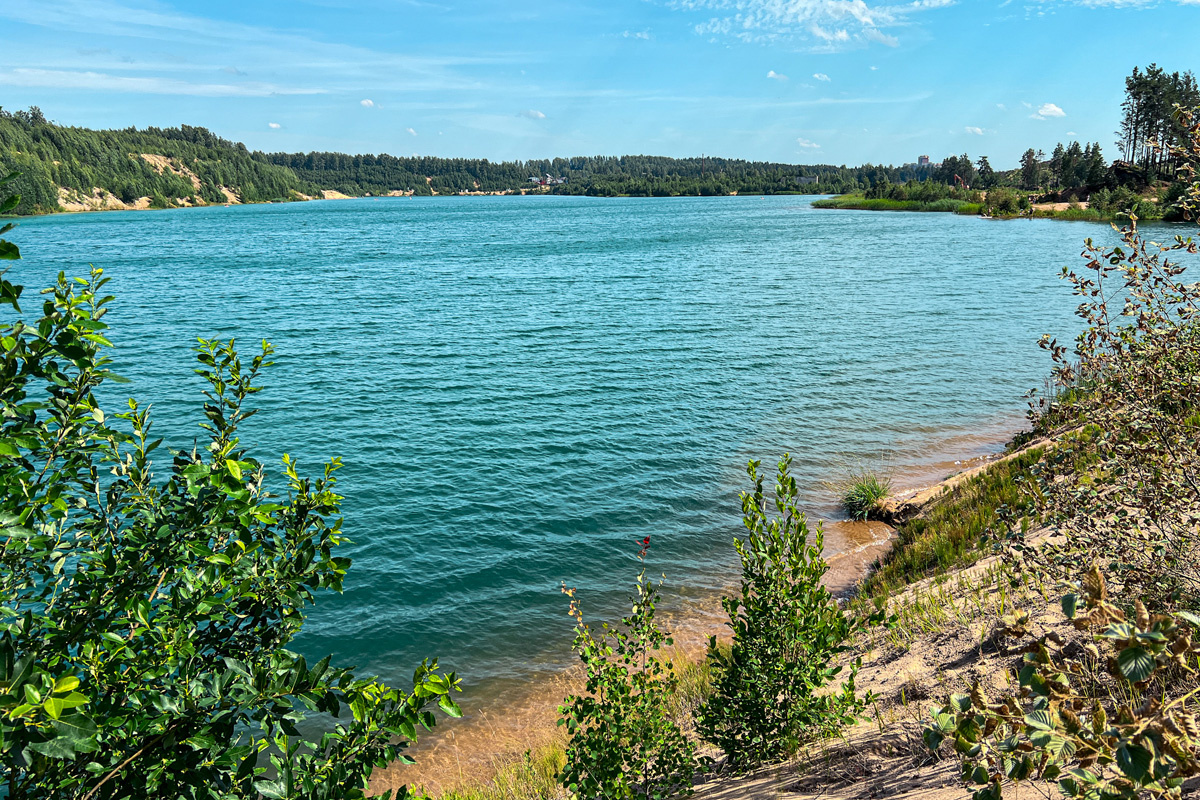 Понадобился нам как-то летом водоём с чистой прозрачной водой, чтобы испытать дыхательную систему для погружений, которую нам дали погонять знакомые. На торфяных озерах уже поныряли, но там мутно и нифига не видно. Посмотрели на карте, что есть поблизости, и поехали во Всеволожск на Пугаревский карьер. Карьер оказался классный: большой, чистый и бирюзовый, с приятными песчаными берегами и дном (в отличие от тех же Кюрлевских или Борницких карьеров, где дно глиняное). В жаркий выходной, конечно, людно. Там, похоже, весь Всеволожск отдыхает и ближайшие районы Питера в придачу. Но чего ещё можно ждать от места, до которого 25 минут на машине от города? )) Народ, кстати, в основном толчётся с шашлыками и пивасиком на берегу, на воде вообще свободно. Сначала парни укатили на двух сапах с девайсом на середину карьера и развлекались там с нырянием, а я сидела на берегу и караулила шмотки. Потом они вернулись, и настала моя очередь кататься на сапе. Цвет воды обалденный, совершенно морской! По