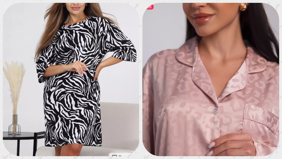 Пижама с футболкой и леопардовыми штанами палаццо в пол. Смотрится довольно стильно и элегантно.