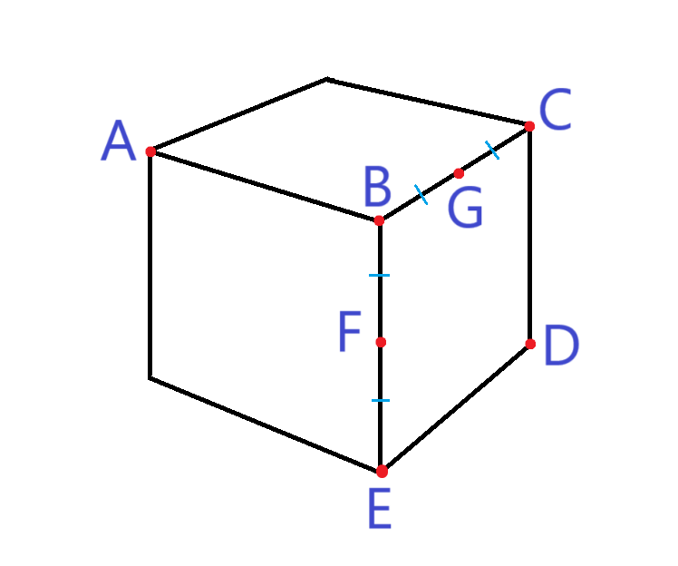 Представьте, что вы оказались на планете идеальной кубической формы. Сейчас вы находитесь на вершине A этого куба, но вам срочно нужно перебраться на противоположную вершину — D. Причём для путешествия вам доступно целых пять маршрутов: При этом точки F и G — середины рёбер BC и BE соответственно. Можете ли вы сказать, какой из указанных маршрутов путешествия является самым коротким? Ответ, как обычно, вы узнаете ниже. Найти самый короткий маршрут по этой планете довольно просто, нужно лишь проанализировать каждый из них. Но прежде всего условимся, что конкретная длина рёбер куба не имеет значения — для удобства просто примем её за единицу. Сначала проанализируем маршрут ABD, а заодно и ещё два — ACD и AED. Очевидно, что длина всех этих маршрутов одинакова — каждый из них включает в себя одно целое ребро и одну диагональ куба. При этом длина ребра равна 1, а длину диагонали нетрудно вычислить с помощью теоремы Пифагора (напомню, что символ ^2 означает вторую степень, или квадрат): AE^2