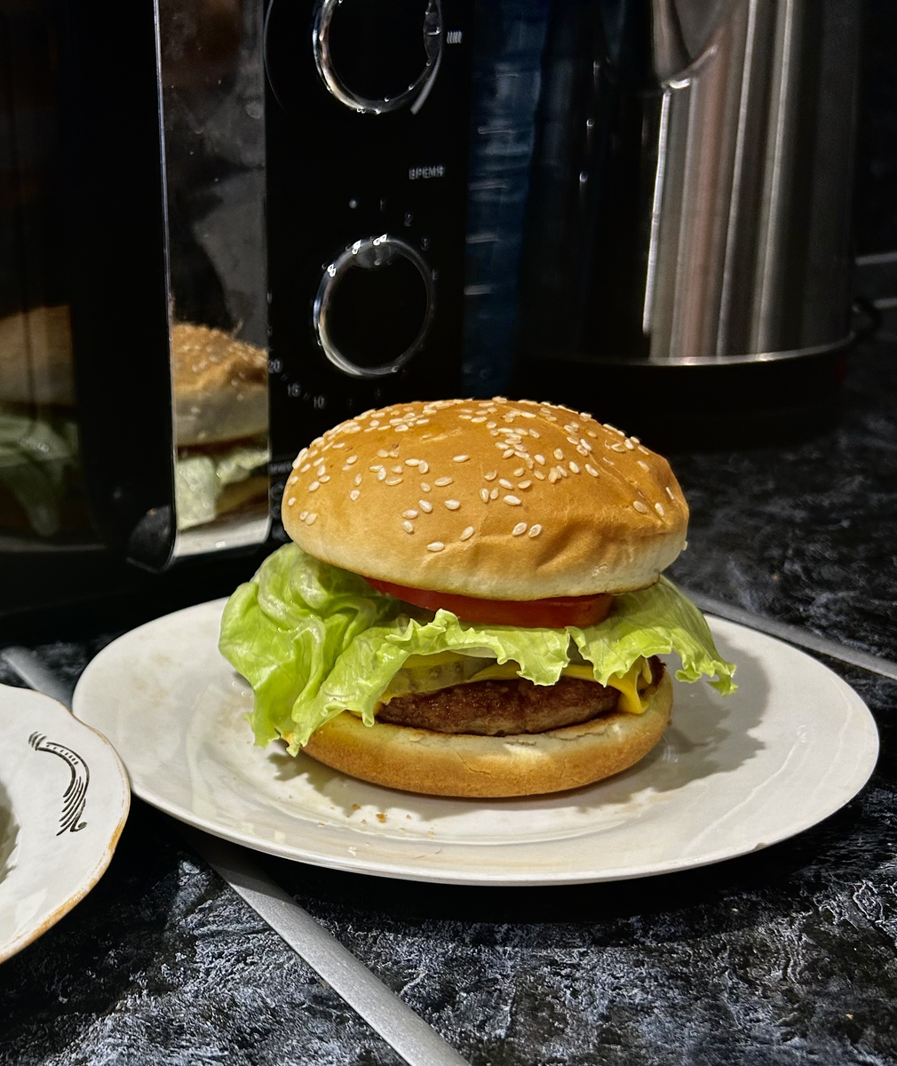 Кто сказал, что домашние бургеры- это не вкусно?! В основном, все мы любим покупать бургеры в кафе, но кто-нибудь задумывался, что их можно приготовить в домашних условиях? И получаются они гораздо вкуснее и сочнее, потому что мы делаем их для себя! Их рецепт очень простой. Допустим, нам нужны две порции, как у меня на фотографиях. Для этого нам понадобится: Если вы купили готовые котлеты, то соль и перец вам не понадобятся. Продукты берем свежие. Далее приступаем к сборке. Можно найти примеры в поисковике, но картинку, я тоже прилагаю, ведь собирала именно по ней). Мой вариант бургеров можно увидеть на фотографиях выше, получились они ну очень вкусными! Ни одно кафе, рядом не стоит!