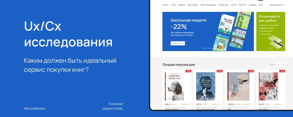 Привет! Я Андрей, разработчик сайтов и веб-дизайнер. Мне посчастливилось, вместе с командой, провести CX исследование. CX — это впечатление человека от взаимодействия с компанией в целом. CX включает все точки соприкосновения клиента с вашим продуктом. В качестве примера мы выбрали тему маркетплейс книг.