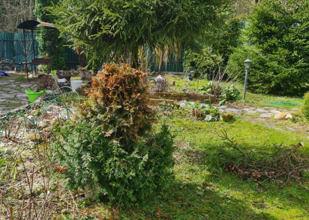 Как владелец влажного и не очень солнечного сада, я давно убедилась в том, что хвойные растения не так уж подвержены обгоранию, как это принято думать. Возводить притенку каким-нибудь туям мне и в голову никогда не придет. А люди часто тратят на это уйму сил и времени, и это причиняет много хлопот и провоцирует нешуточные неврозы.