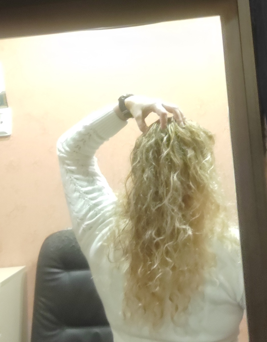 По факту рождения имею кудрявые волосы, а так как давно крашу волосы в светлый цвет, то конечно их структура изменилась, они итак пористые и сухие от природы, а тут еще окрашивание. В моем арсенале есть увлажнитель, масла, специальные шампуни и бальзамы. Честно признаюсь, маски делаю раз в год максимум, от природы ленива. Волосы до лопаток, легко сворачиваются в баранку, даже без резинки, очень удобно. Стричься, по рекомендации парикмахера, нужно хотя бы раз в три месяца, но я стригусь максимум раз в год, безалаберность. Чтобы я ни делала, какие уходовые средства не применяла, эффект один и тот же. Окрашивание моих волос в салоне, на данный момент примерно 8 тысяч: корни, тонирование, стрижка концов. Причёски мне никакие не подходят, их все равно из-за кудрей не видно. С короткими волосами я похожа на одуванчик, требуется укладка, а я не способна на подобные вещи. Мне нравятся прямые волосы, вернее я сама себе нравлюсь больше с прямыми волосами. Как говорится, прямые завиваем, кудрявые