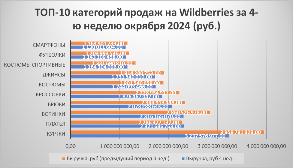 ТОП-10 самых продаваемых товаров на Wildberries за 4-ю неделю октября 2024: что покупают чаще всего?