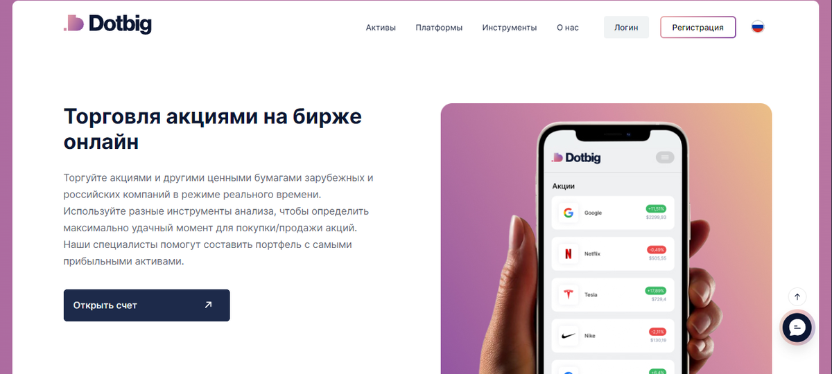«Я недавно начал инвестировать и выбрал DotBig за удобный интерфейс, платформа помогает новичкам быстро освоиться и начать работать с акциями».