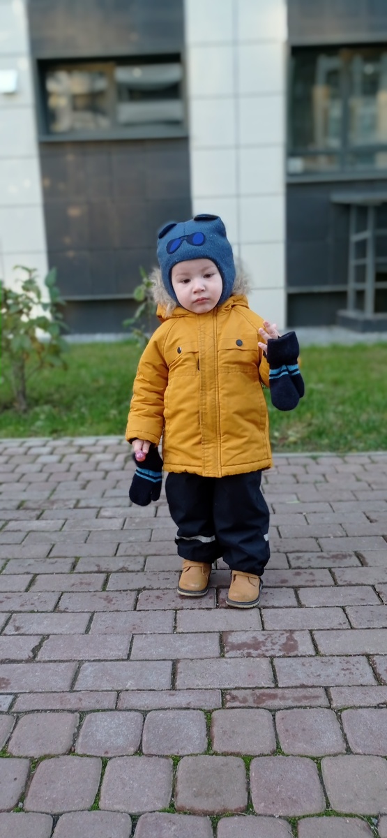 На улице ветер сегодня, + 5 , на завтра первый снег передают, а нам вечером идти к Лору на осмотр и к педиатру за обязательной справкой в сад после карантина,а то потом выходные,не попадём на приём.. Сегодня ходили не надолго гулять, Илью еле уговорила первый раз одеть другую куртку. Красная ему нравится, что до этого он носил, а тут похолодало и пора в жёлтую переодеться уже, а она потяжелее будет.