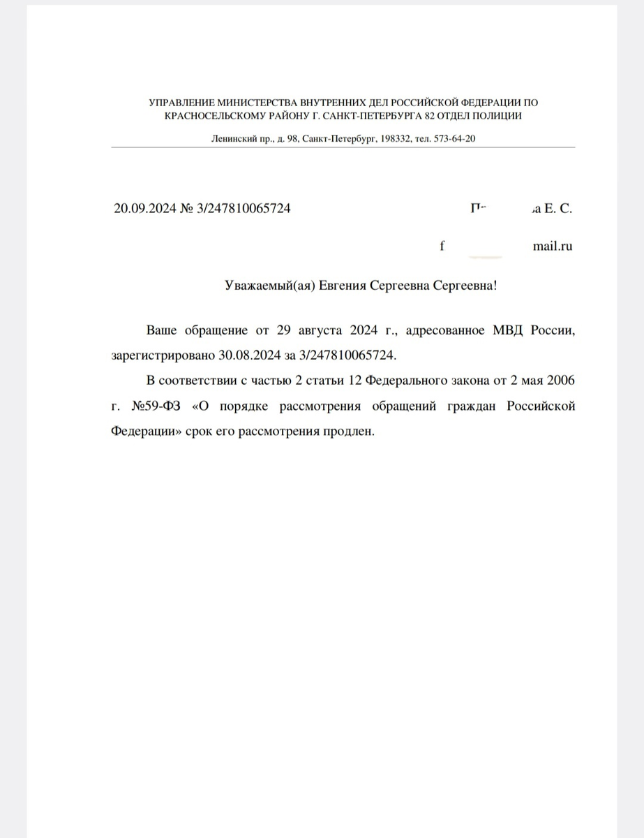 И вот, прошло два месяца, прокуратуры еще не пришли к единому мнению, а вот полиция решила мне ответить следующее: