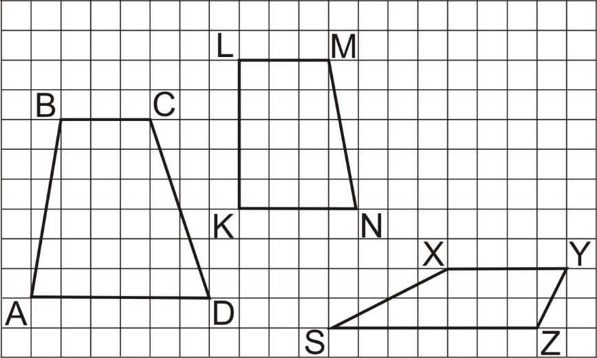 Найдите площадь каждой изображенной трапеции. Длина стороны клетки равна единице.