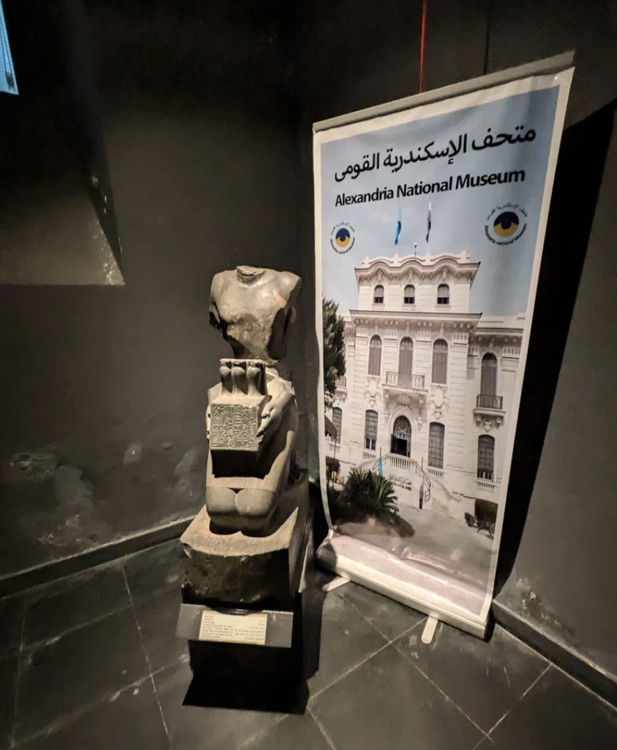 Для того, чтобы увидеть древний Египет в Национальном музее Александрии, нужно спуститься вниз по лестнице в подвал, где создана по-настоящему загадочная атмосфера: Вот тут сидят два писца - люди в Древнем Египте крайне уважаемые. А это орудия труда писцов: Статуя писца Гранит Древнее королевство Саккара. Быть увековеченным в виде статуи писца было великой честью, на которую сначала претендовала только принцы из королевской семьи 4-й династии, а затем ее приняли многие высокопоставленные чиновники. Писца обычно изображали сидящим на корточках, скрестившим ноги, на низком постаменте, с раскрытым свитком папируса в руках и пером в руке. Таинственный полумрак музея: Коленопреклоненная статуя, держащая святилище Осириса. Мужчина держит в обеих руках наос со статуей Осириса, бога подземного мира. У статуи черты лица позднего периода, и она держит фигурку Осириса. Бритая голова писца Головы статуй, выполненные в этом стиле, появились во времена 29-й династии и стали широко распростр