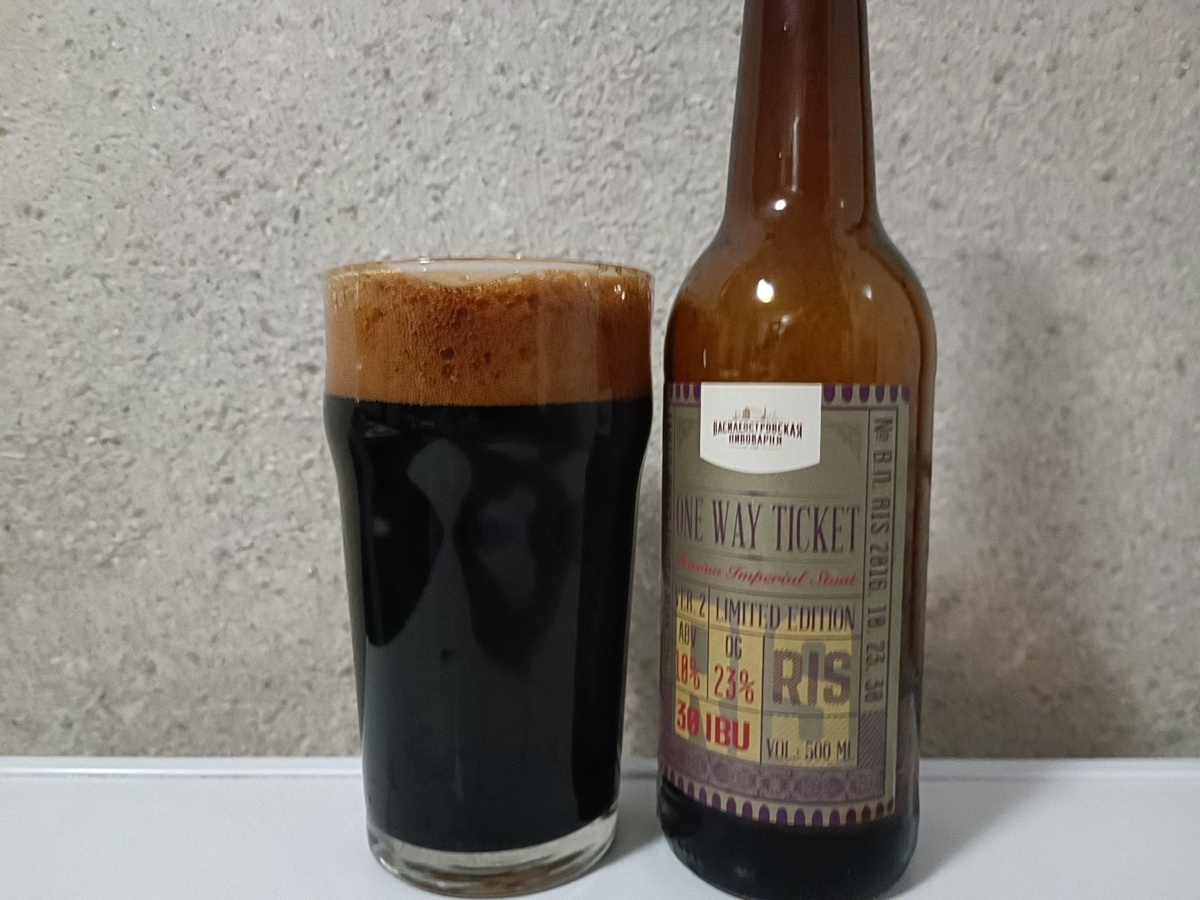Сегодня у меня в бокале русский имперский стаут от Василеостровской пивоварни под названием One Way Ticket (вторая версия) Энс. 23 Алк. 10 Бутылка объёмом 0.5 литра обошлась мне в 180 р, что весьма недорого для этой стилистики. Пиво чёрного непрозрачного цвета с красивой кремовой, но быстро растворяющейся пенной шапкой. В аромате шоколад, жженые кофейные зёрна. Вкус довольно водянистый, в послевкусии довольно сильная горечь. Сухо. Не хватает баланса. Пустоват, но в стиле. В целом, недорогой непритязательный рис. 6/10 Моё мнение не претендует на истину в какой бы то ни было инстанции, это всего лишь частная точка зрения. Поддержите автора лайком и подпиской, если было интересно. Чрезмерное употребление алкоголя может нанести вред вашему здоровью.