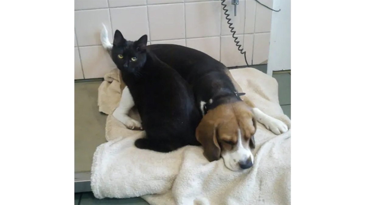 Кот-утешитель: выживший питомец помогает животным во время реабилитации