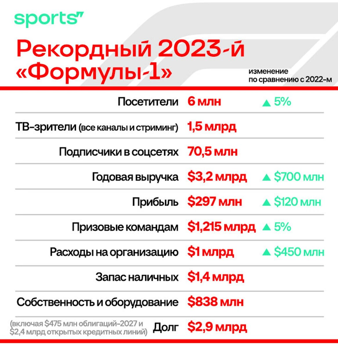 «Формула-1» растет ошеломительными темпами по всему миру и в смысле доходов, и по люксовым спонсорским портфолио, и по посещаемости. 2023-й оказался самым финансово успешным в истории серии даже несмотря на безжалостное доминирование «Ред Булл»: $3 млрд доходов!