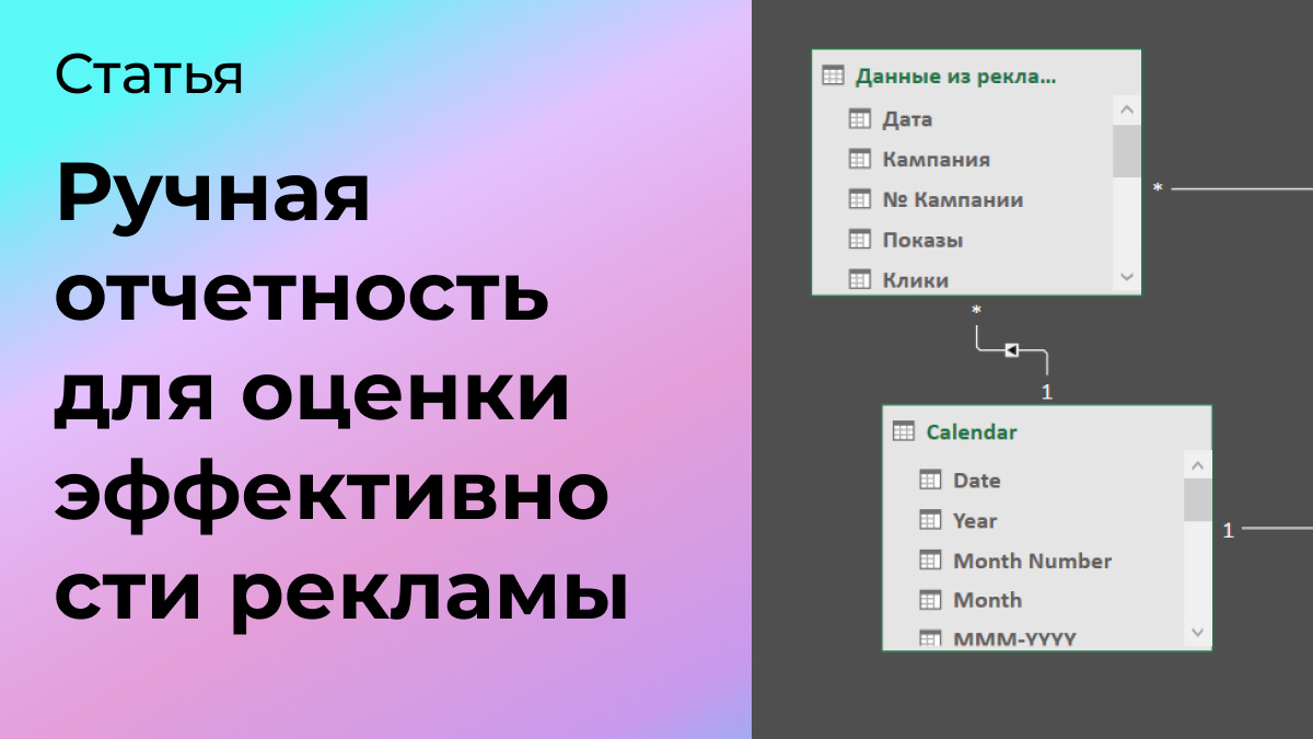 В статье расскажу про ручной способ построения сквозной отчётности для оценки эффективности рекламных кампаний в Excel.