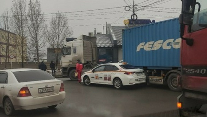ДТП с грузовиком заблокировало движение на нескольких улицах в центре Барнаула