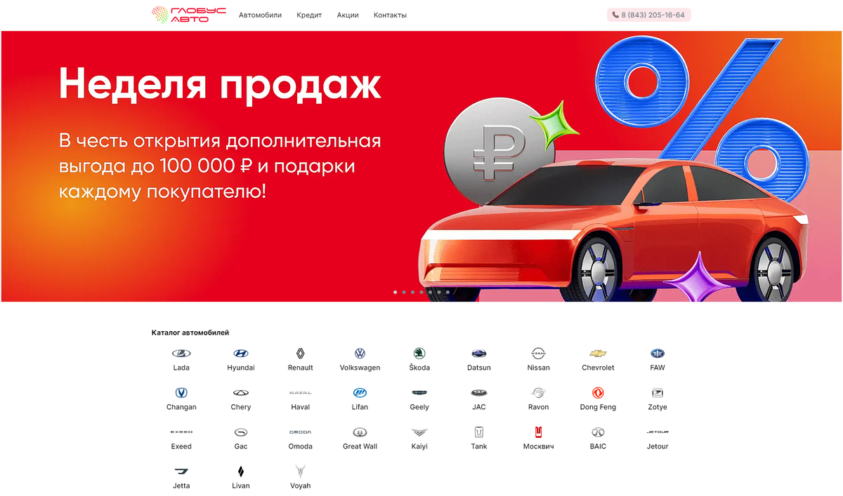 Еще больше о Глобус Авто читайте на сайте! Приветствуем всех, кто ищет новые автомобили по выгодным ценам! Не так давно в Казани открылся автосалон «Глобус авто». Автоцентр находится по адресу: ул. Фатыха Амирхана, д. 40А. Салон работает с 9 утра до 9 вечера без выходных. Внимание нашей редакции привлек отнюдь не шаблонный сайт «Глобус авто», а объявления на автомобили, которые размещены на этом сайте. Если быть точнее, то дело не в самих объявлениях, а ценах, которые указанные в них. Всё дело в том, что в данном автосалоне вы можете приобрести автомобиль как минимум в два раза ниже рыночной цены. Буквально каждое объявление на автомобили сопровождается информацией о скидке. «Глобус авто» — новый автосалон, которому только предстоит создать репутацию, поэтому, в целях привлечения новых клиентов, у автоцентра действует ряд акционных предложений. Например, при сдаче своего автомобиля по Trade-in вы можете получить скидку до 100 000 рублей на покупку нового автомобиля, или скидку в 50 000