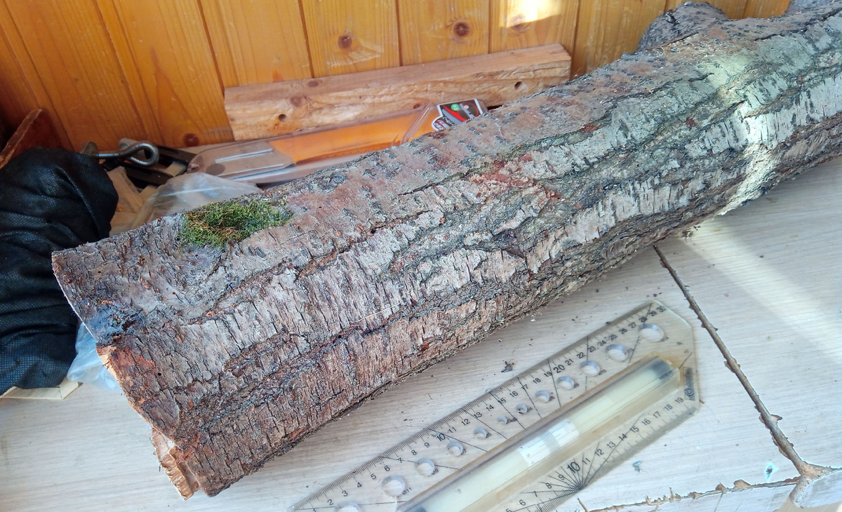 Отпиливаю кусок длиной примерно 25 сантиметров – у открытого торца есть трещины, поэтому некоторая часть уйдёт в отходы.