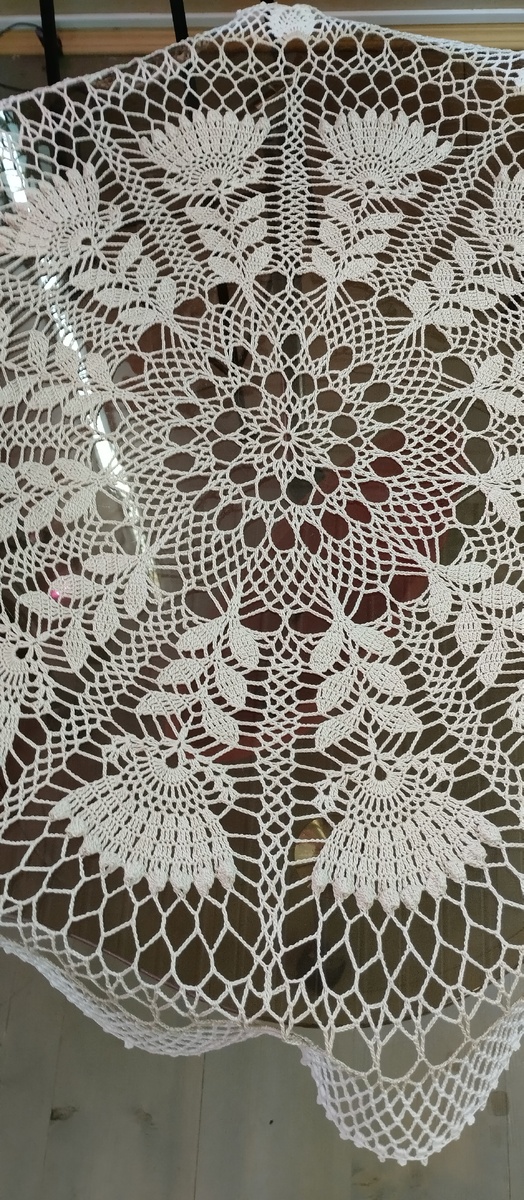 Просматривая в очередной раз Дзен, вдруг увидела ее, и вау, ай, ой, как хочу!!! Спросила у автора -https://dzen.ru/suite/481dea50-9e95-4291-a46b-f407df4f090e?share_to=link, не продаётся ли это творение. Оказалось, что можно купить. Я о такой скатерти мечтала уже давно. Сама я вяжу только спицами. Дочка старшая вяжет только крючком. Вот так мы разделились. Я спрашивала дочку, сможет ли она мне скатерть связать, она сказала, что занята и не до вязания ей сейчас. Они сейчас в другой стране живут, проблем достаточно и не до вязания. И любит она больше всего вязать игрушки. Так что не сложилось. Но мечта о скатерти была. Оставалась, жила. Не сказать, чтобы я ее прям искала. Конечно найти не сложно. Сейчас предложений много. Я мечтала на будущее. Всегда много разных дел, куда денежки пристроить. Мы ведь не богаты, чтобы любой каприз сразу исполнять. Ну и мечта сама по себе душу греет. Мечтать так приятно!!! У меня, помимо того, что просто люблю скатерти на столах, еще есть мечта оформить г