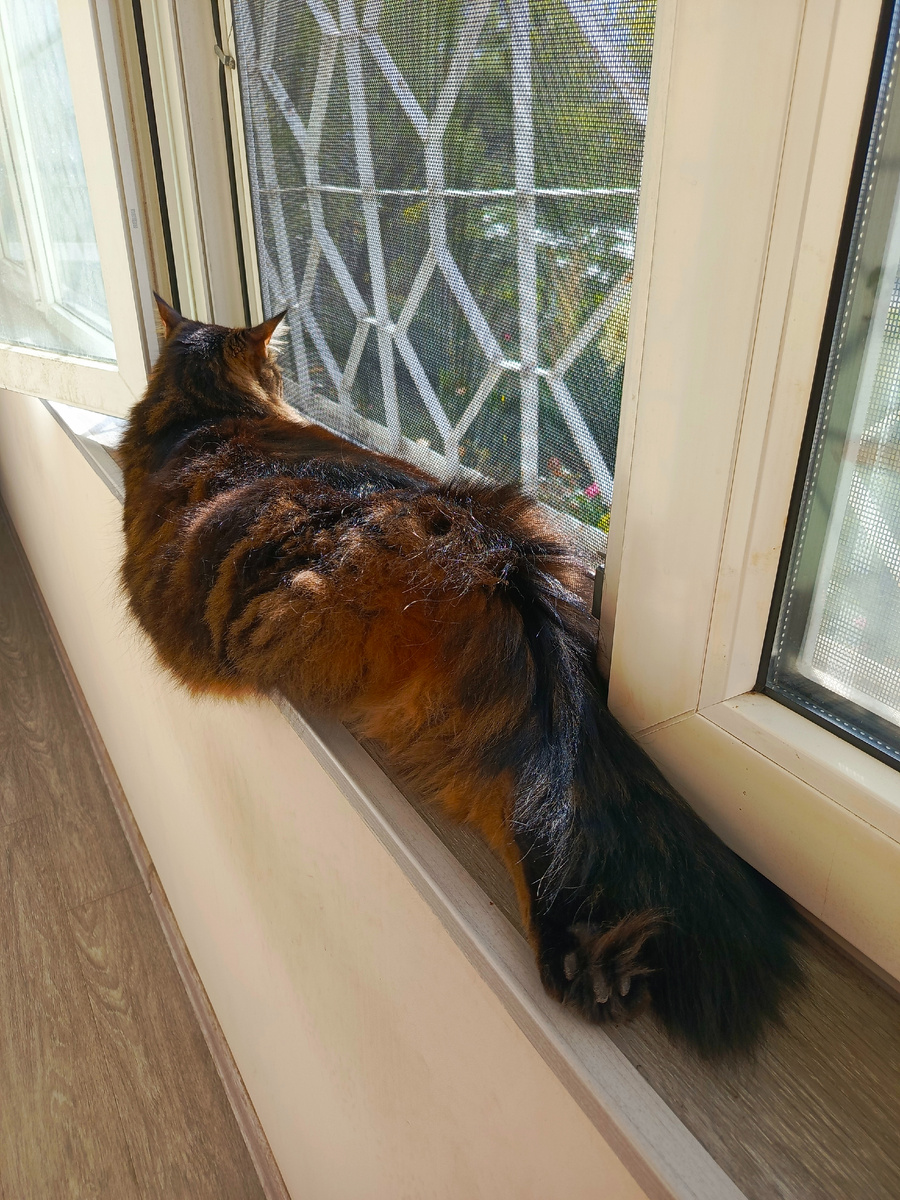 Всем привет! С вами Кузя Кусалочкин и сегодня я расскажу как меня оставили одного дома и что сказали в клинике. Утро началось стандартно, с креветки, а вот таблетку мне пока хозяйка не давала, решила подождать результаты анализов. Результаты пришли утром и хозяйка немного посидела дома и решила поехать проконсультироваться по дальнейшим действиям. Погода была хорошая и я даже полежал на солнышке в позе котомодели: Хорошо, что в этот раз хозяйка поехала без меня. Вот всегда бы так было. Жаловалась потом, что час в очереди пришлось посидеть. А кому легко сейчас? Доктор сказал, что таблеточки мне еще пить пару месяцев и только потом меня опять ждет "тощак". Динамика хорошая, положительная, но не всё так быстро как хотелось бы. Да и хозяйка читала и понимала, что в моей ситуации всё может месяца на 2-3 затянуться. Я пью простое, на травках, оно медленно, но помогает. ( Пишу так чтобы статью не признали медицинской, а то тут уже много всяких слов написано). И что вы думаете, после этого