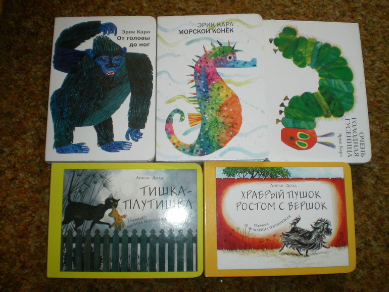 Артёму перед школой я подарила не менее любимую "Собачку Соню", а картонка Эрика Карла верно служит делу народного просвещения уже 11 лет )) К тому же с тех пор "идейных" дорогущих книжек-картонок у нас прилично прибавилось.
