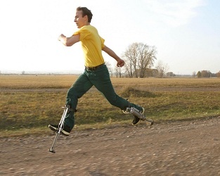 Помните сказочные семимильные сапоги-скороходы? Один шаг – семь миль за плечами? Началась эта история в 73 году прошлого века, когда студент Уфимского авиационного института Виктор Гордеев отправился на военные сборы. (В СССР все студены ВУЗов проходили военную подготовку и вместе с дипломами получали офицерские погоны с лейтенантскими звездочками). Вернувшийся со сборов измученный студент посетовал своему руководителю дипломного проекта на изнурительные марш-броски: «А кирзачи – тяжеленые, еле-еле в них бежишь, впору мотор к ним приспосабливать!» Преподаватель задумчиво почесал подбородок: «Ну вот Вам и тема для диплома». Тему утвердили, Гордеев приступил к работе. Диплом был написан, даже изготовлен опытный образец, защита прошла успешно, студент стал инженером и уехал по распределению. А сапоги попали на выставку научно-технического творчества молодежи, где вызвали дикий восторг. Внешне сапоги выглядели как ходули, внутри которых находился подвижный поршень, приводимый в движение
