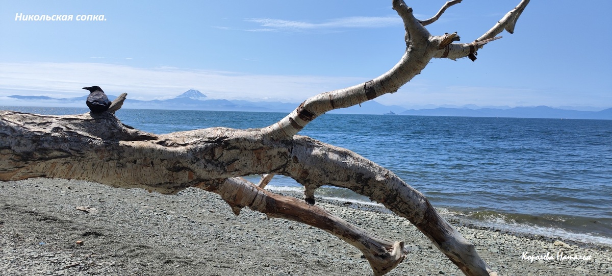 Никольская сопка одна из самых доступных достопримечательностей города, ее можно посетить самостоятельно, без гида, лишь преодолев небольшой подъем. Но мы решили пройти вдоль сопки по берегу, не поднимаясь на ее вершину. Мы любовались на вид Вилючинского вулкана, единственного, который показал нам небольшую часть своей красоты. Его высота 2173 метра над уровнем моря. Нам он «открылся», наверное, только на половину своего величия. У подножья Никольской сопки множество красивых камней, напоминающих своей формой мини вулканчики. В общем мы там надолго «зависли», с трудом заставляя себя не смотреть под ноги. А под ноги у берега смотреть стоит. У самой воды было много мазута, в который легко можно вляпаться.