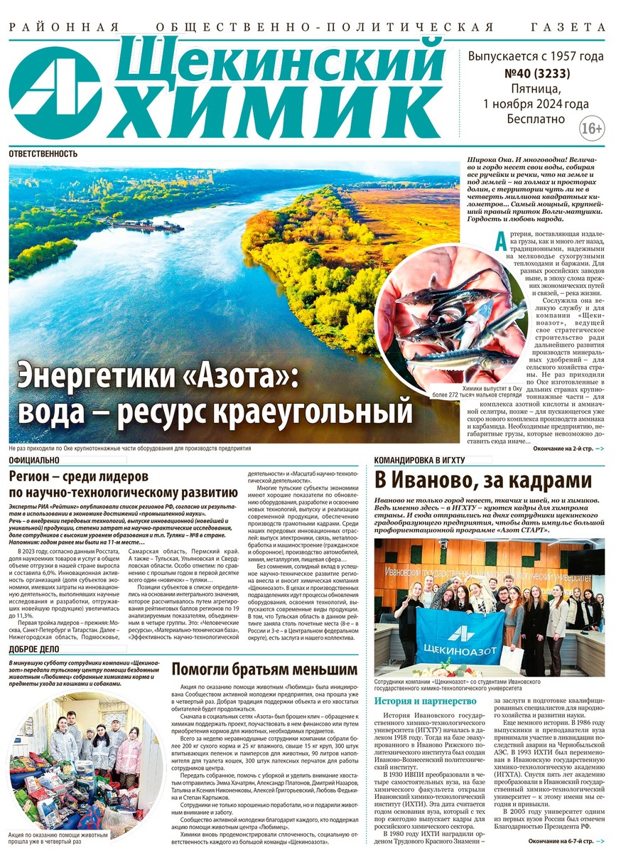 «Щекинский химик»: будьте в курсе заводской и районной жизни!