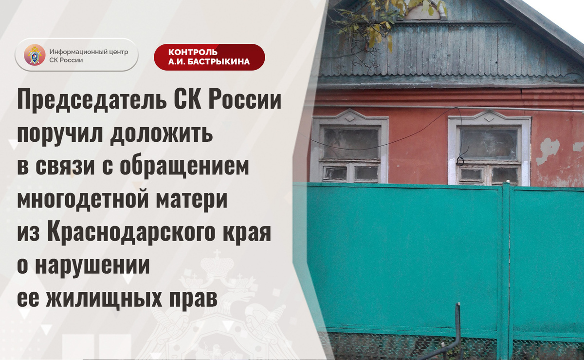 Председатель СК России поручил доложить в связи с обращением многодетной матери из Краснодарского края о нарушении ее жилищных прав