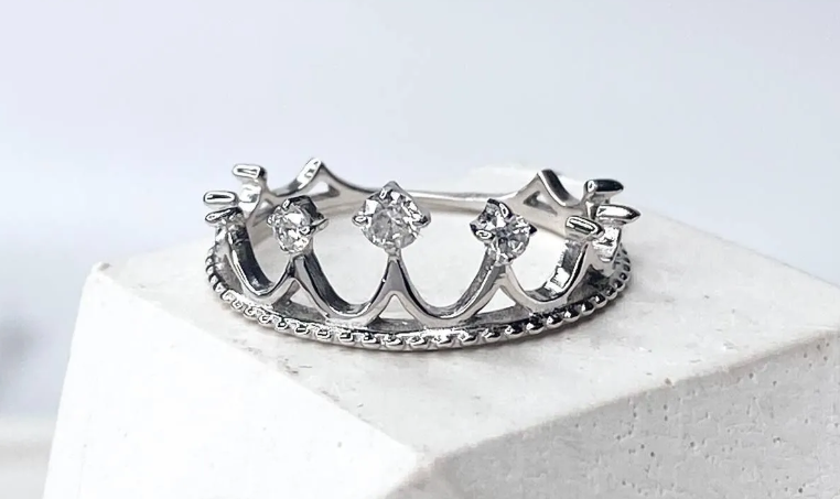Украшение для истинных королев, которые хотят быть звездами не только на праздниках. Кольцо в виде короны из белого золота будет роскошно смотреться на изящном женском пальчике. Оно символизирует аристократичность, любовь к роскоши и огромную уверенность в себе.