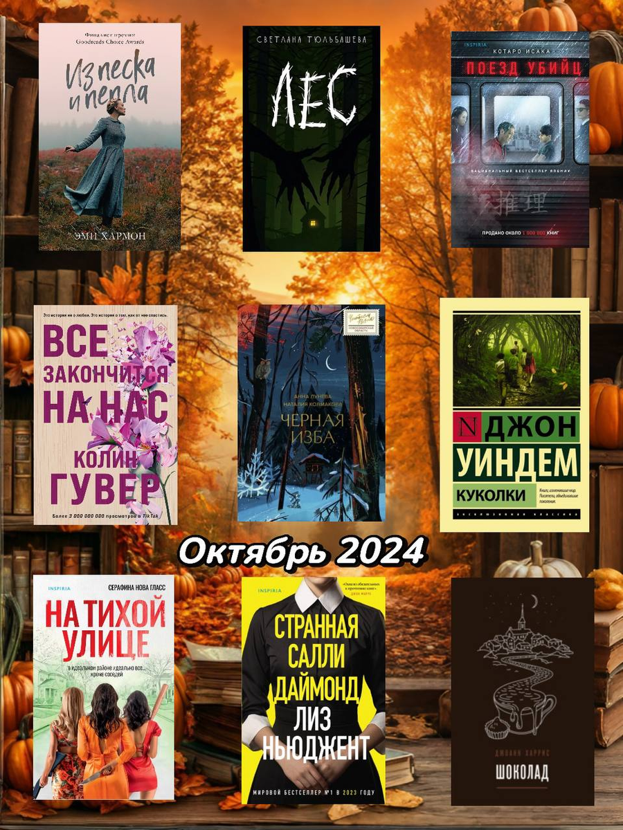 Октябрь прошел внезапно плодотворно, несмотря на болезни, на книги, которые не затронули сердечко, на реальную жизнь, которая периодически безжалостно нападала) Прочитано и прослушано за октябрь: 📝 Котаро Исака «Поезд убийц» (аудиокнига) 📄 Светлана Тюльбашева «Лес» (аудиокнига) 📝 Эми Хармон «Из песка и пепла» 📄 Джон Уиндем «Куколки» 📝 Анна Лунева, Наталия Колмакова «Черная изба» 📄 Колин Гувер «Все закончится на нас» (https://t.me/sibiria_books/213) 📝 Лиз Ньюджент «Странная Салли Даймонд» (аудиокнига) 📄 Серафина Нова Гласс «На тихой улице» 📝 Джоанн Харрис «Шоколад» (аудиокнига) ❤️ Какой же спорный месяц вышел… Очень тяжело выбрать фаворита, ничего не впечатлило... Пусть будет «Из песка и пепла» ✖️ А вот сюда хочется половину из списка внести. Если уж выбирать, то «Черную избу» сюда вынесу Как прошел вас октябрь в книгах? Делитесь своим результатом) P.S. Нас уже больше 100 человек в ТГ! В понедельник расскажу про розыгрыш) Спасибо вам♥️ #итогимесяца #прочитано