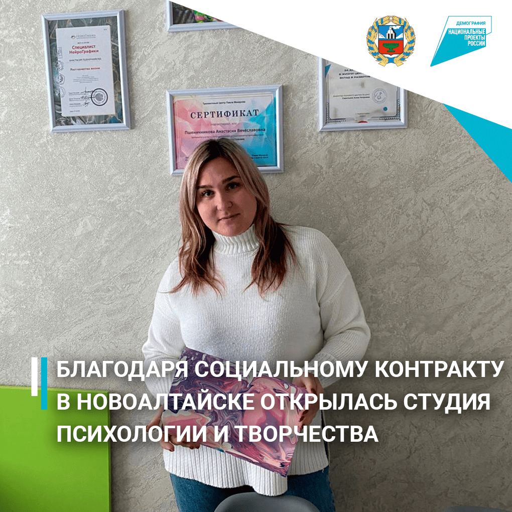 Благодаря социальному контракту в Новоалтайске открылась студия психологии и творчества.