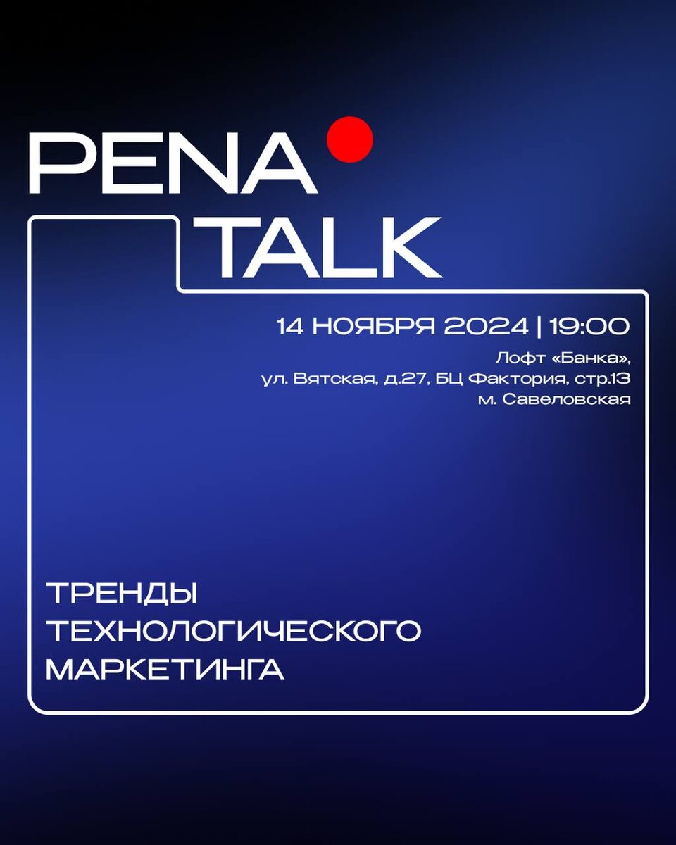 14 ноября в Москве пройдет конференция PENA TALK: Тренды технологического маркетинга. Мы — PENA Agency — агентство стратегического креатива и интегратор digital-решений. Наши клиенты: Unilever, Kari, PepsiCo, Heinz, Alium, «Азбука вкуса», «Евраз», Bridgestone, «Сбербанк», «Ростелеком», «Московская Биржа» и др. Наша миссия — диджитал трансформация бизнеса в России. Мы запускаем серию конференций для владельцев бизнеса, директоров по маркетингу, ЛПРов и бренд-менеджеров. PENA TALK – это площадка для обмена опытом и знаниями, где топы рынка делятся актуальными трендами в технологическом маркетинге, рассказывают о новых тенденциях и помогают применять все это на практике. 14 ноября в стильном лофт-пространстве «Банка» в Москве мы поделимся новыми тенденциями в инфлюенс-маркетинге, а также: 🔹 Представим реальные кейсы от экспертов отрасли 🔹 Разберём тренды инфлюенса на 2025 год 🔹 Разыграем подарки от спонсоров: ноутбук от Echips, продукты ITAB, боксы от Коломеев, сертификаты от бренда Т