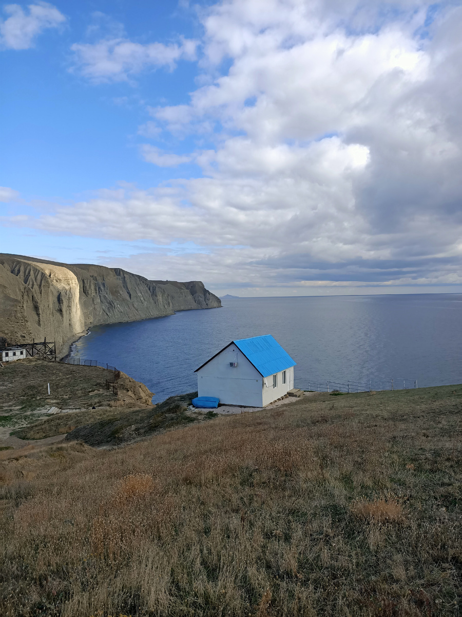 Над домом возвышался холм, с которого и следовало фотографировать это «чудо блогерской мысли». С этого ракурса лучше всего были видны все прелести Крымской Исландии: белый домик на краю отвесной скалы на берегу Чёрного моря, которое казалось Атлантическим океаном.