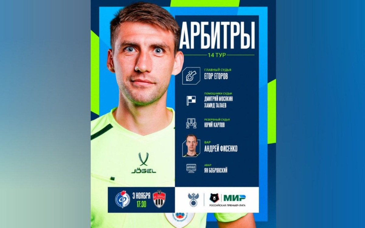 Егор Егоров рассудит воронежский «Факел» и подмосковные «Химки»