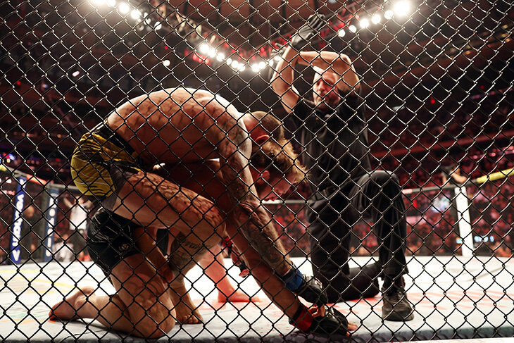 Таким изменением UFC, конечно, не вернулись к прайдовским правилам с соккер-киками и топчущими ударами по голове соперника – и даже не приблизились к ONE, в котором колени в голову приземленному оппоненту разрешены в любом положении. Промоушен лишь прикрыл лазейку в правилах, которой пользовались бойцы, находящиеся в согнутом положении.