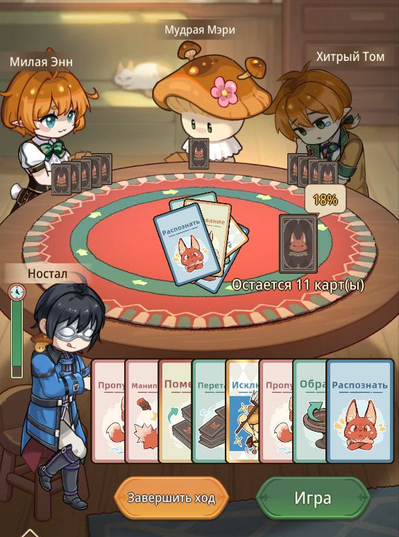 Вторая особенность — боты часто скидывают карты «Обратить», «Распознать», «Перетасовка» и «Священность» без всякой пользы. Зная это и имея на руках карту «Требование», можно не спешить с ее разыгрыванием, чтобы увеличить шанс на получение чего-то более ценного. Просто дождитесь, пока боты не выкинут все вспомогательные карты!