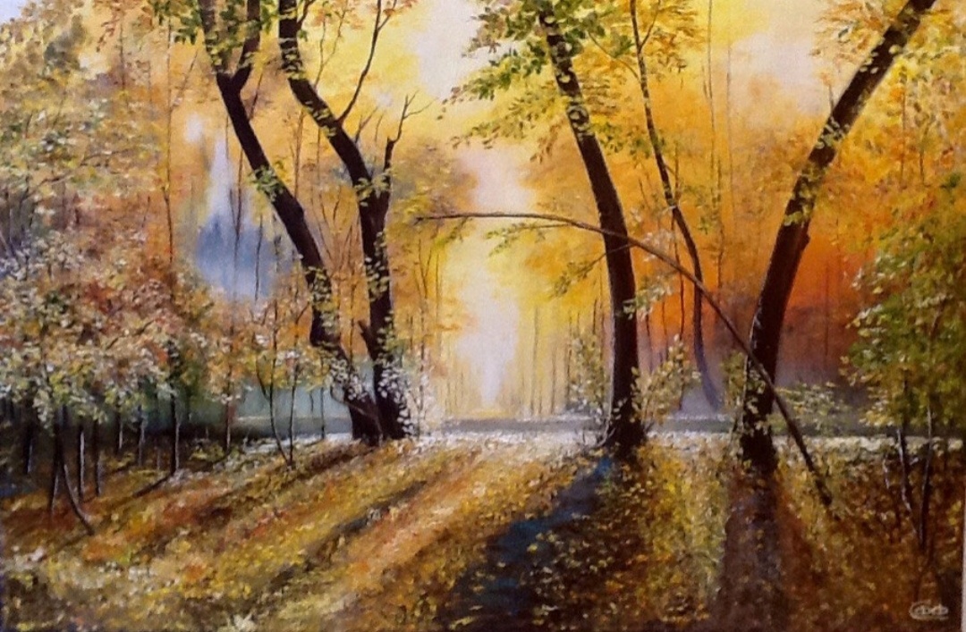 Приглашаю окунуться в осеннее настроение. Познакомившись с творчеством художника Юшкевича В.Н.,была очарована его картинами,мастерством работать с цветом. Это знакомство помогло рождению нескольких пейзажей.Вот один из них Спокойный день в середине осени , солнышко пробивается сквозь листву и разливается по земле, превращая их в золотистые " монетки"...А легкий туман , предает загадочность .. . Я люблю осень , она всегда звучит музыкально и поэтично. Разве может другое время года позволить себе такую вольность в красках ?!!! Спасибо за просмотр. Подписывайтесь на мой канал, ставьте лайки буду очень благодарна. Холст на подрамнике 40х 60" Масло. "Дыхание осени ".