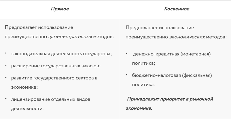 Экзамены неимоверно быстро приближаются, к ним нужно готовиться. Всё чаще при этом возникают трудности. По итогам прошлого года компетентные органы итоги подвели, на проблемные темы указали, что делать нужно сообщили. На самом деле, из года в год трудные темы особо и не меняются. У меня в прошлом году было много публикаций и по конкретным вопросам, и с разборами сложных заданий. Можно посмотреть тут в подборке: В этом году, я думаю, нужно некоторым направлениям уделить особое внимание. И начнём мы с очень актуальной темы - экономической политики государства. Для начала следует обозначить общие экономические цели государства в экономике. Это в первую очередь экономический рост, создание эффективной экономической системы, экономическая свобода и безопасность, вопросы занятости. В теме, связанной с экономической политикой государства, есть простые моменты и сложные. Самое главное, что нам нужно понять: государство может влиять на рынок в экономике двумя способами: Про прямое регулиро
