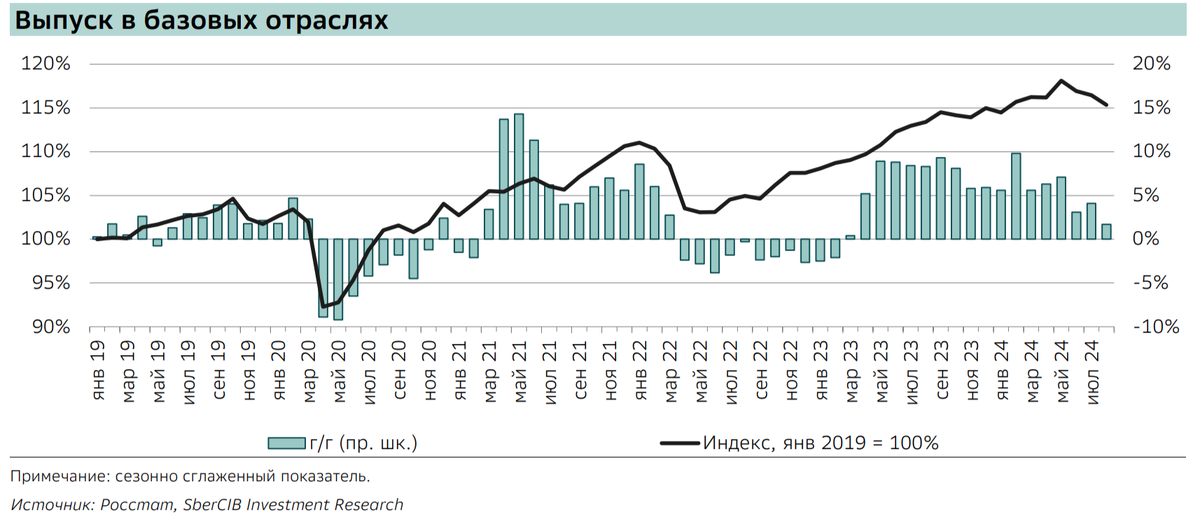 В августе выпуск в базовых отраслях в годовом выражении достиг минимума с марта 2023.