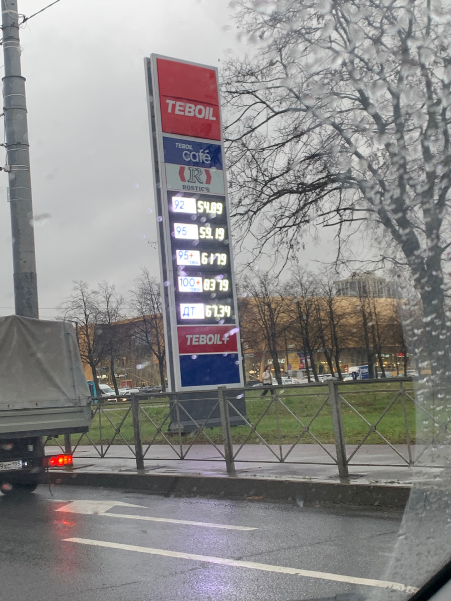 Всем привет. Сегодня проезжая мимо заправки я не сразу заметил изменение цены на топливо. Был мелкий дождь и фото получилось не чёткое. Получается целый месяц цена на бензин не менялась и сегодня 95й подорожал всего на 5 копеек! 🤔🤣