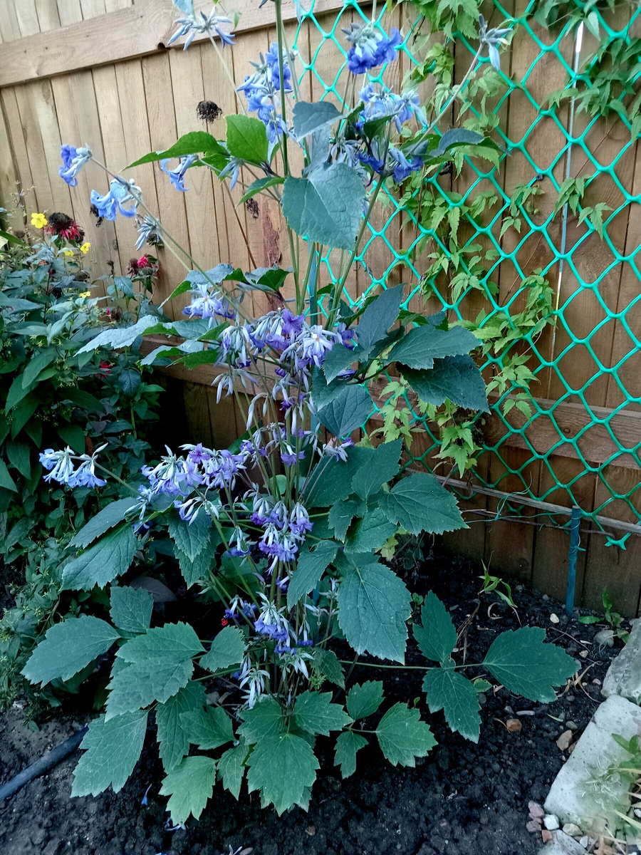 Фото из интернета демонстрировали широкий куст с листьями - лопухами, и небольшими единичными цветочками на концах веток. Цвет цветочков хорош, бесспорно, небесная синь, но на этом и все. Именно потому и посадила Кассандру в дальний угол, дабы прикрыть забор.
