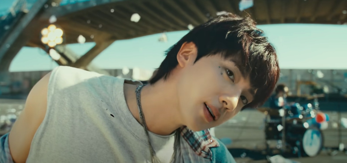 Пока я была на лечении в санатории, у Джина вышел клип, перед выходом альбома. Хоть при первом просмотре его у меня были проблемы с интернетом и клип очень "тормозил", но хочется отметить, что клип очень жизнерадостный. Будто Джин представляет себя рокером. Ощущение, когда хочешь спеть песню всему миру. Jin. BTS. Песня I'll Be There. Клип вышел 25 октября. В первом кадре жест вверх барабанными палочками. На фоне светит солнце. Джин дотрагивается до микрофона губами. Джин стоит возле стойки микрофона, позади него играют музыканты. Будто Джин и музыканты остановились где-то на дороге, около моста и решили выступить для людей. Джин поёт и в то же время обращается через камеру к фанатам. По мосту идёт толпа людей. Сначала к выступающим подходят трое мальчишек со скейтами. Они покупают мороженное в фургоне с едой, садятся на дорогу и наблюдают выступление Джина. Здесь подходят несколько девушек. Они потрясены, увидев Джина. Далее идут медленные кадры красавца Джина. Он же здесь в образ