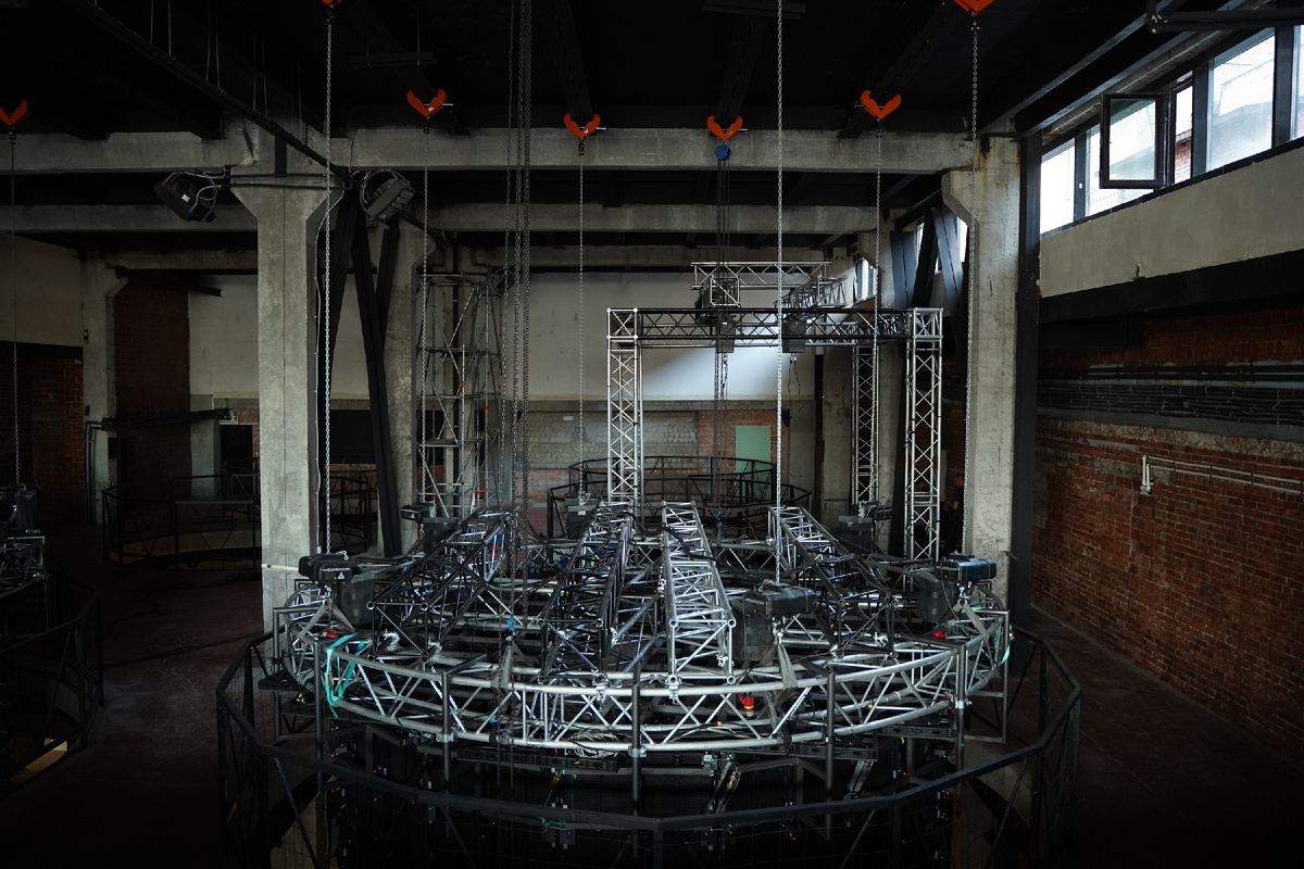 «Даже на этапе непосредственного монтажа инсталляции то и дело появлялись несостыковки, которые приходилось оперативно исправлять. Но это нормально, учитывая сложность установки оборудования. Главное, что мы смогли добиться результата, который был изначально задуман», — Арсений Тюрин, креативный директор выставки.