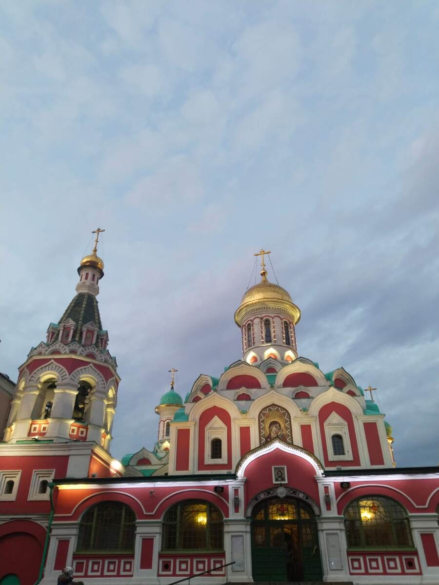 В центре столицы нашей Родины Москве, на улице Никольской, 3, находится православный Собор Казанской иконы Божией матери. Первая деревянная постройка собора была в 1612 году на средства Дмитрия Пожарского. Возведён собор был на месте бывшего здания торговых рядов. В соборе разместили Казанскую икону Божией матери, которая была главной главной войсковой святыней Второго народного ополчения, её в собор из Введенской церкви на Лубянке доставил Пожарский. Собор освятил патриарх Филарет в 1625 году. В 1630 году после пожара собор построили из камня, а освящён он был в 1636 году, на освящение присутствовал Михаил Фёдорович Романов - первый русский царь из династии Романовых. Храм много раз перестраивали и в конце 1760 года, в очередной раз он был перестроен на деньги княжны Марии Александровны Долгоруковой. В 1812 году, осенью, во время Отечественной войны перед иконой Казанской Божией матери в Казанском соборе служили молебен о спасении Российской империи, на котором присутствовал полк