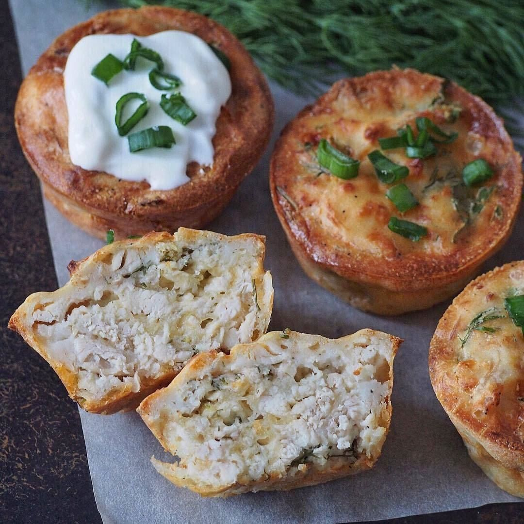 КУРИНЫЕ МАФФИНЫ С СЫРОМ Эти маффины можно кушать как в горячем, так и в холодном виде. Получается очень вкусно и сытно. Удобно, что блюдо порционное, можно взять на перекус, например😋 НА 10 ШТУК 📍350 грамм куриного филе, 2 яйца, 250 грамм молока, 120 грамм муки (у меня рисовая), соль, перец, сушеный чеснок по вкусу, 80 грамм сыра, пучок свежей зелени. ⃣Куриное филе отварить до готовности и разобрать на волокна. ⃣В миске смешать яйца, молоко, муку, соль, перец, чеснок и венчиком взбить до однородной смеси без комочков. ⃣Сыр натереть и смешать в отдельной миске с куриным мясом и мелко порубленной зеленью. Влить 6-7 столовых ложек мучной смеси, перемешать. Должна получится салатная масса. ⃣Формы для маффиннов смазать сливочным маслом и присыпать бока и дно манкой (если формы силиконовые, то этот этап опустить). ⃣Заполнить формы мясной смесью, сверху залить мучной (по 2-2,5 столовых ложки на 1 маффин). ⃣Выпекать в предварительно разогретой до 180° духовке до румяности (примерно 30 минут)