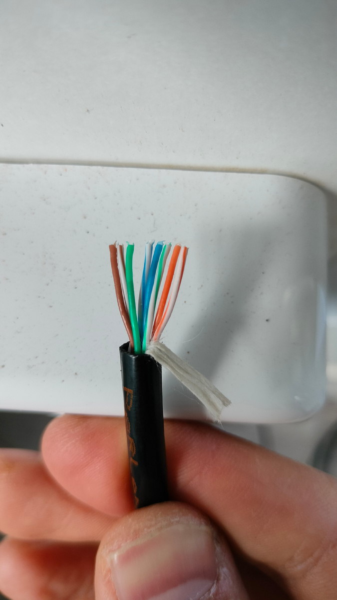 - Расположите проводники в порядке: оранжевый, белый-оранжевый, зелёный, белый-зелёный, синий, белый-синий, коричневый, белый-коричневый.