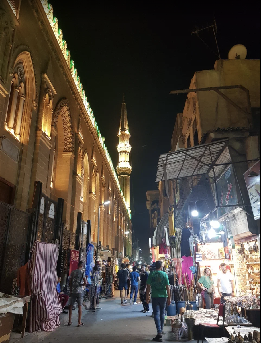 Я прогулялась по улице Аль-Муизз вечером, когда над городом взошла Луна, на улицах зажглись фонари, и она превратилась в настоящую арабскую сказку ! Улица Аль-Муизз (Улица Испин Аллах) считается одним из крупнейших исламских памятников под открытым небом в мире. Кажется, что здесь построили все самые красивые мечети исламского периода Каира. Смотрятся они мистически в лунном свете. Если бы не шум расположенного там арабского базара, можно было бы помедитировать. Базар обычный, туристический, заполнен сувенирами: Роскошный антикварный магазин: Изможденные карибские кошки на каждом углу ждут подачки: На улице много народа - все вышли на улицу после жаркого дня наслаждаются вечерней прохладой (22 градуса - это прохлада для Каира) Очень хочется рассмотреть красивые здания, которые при подсветке становятся еще красивее: Строиные ряды шаровар на фоне минарета - улыбнул! Во многих местах выступают уличные артисты: Улица довела меня до ворот Баб аль-Футух: Это замечательное колоритно