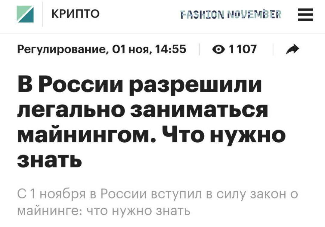 👁Майнеры обязаны предоставлять ФНС данные об объеме полученной криптовалюты и о том, куда она была зачислена; 👁Физлица могут майнить в пределах энергопотребления шести тысяч киловатт-часов в месяц, при превышении этого лимита необходимо зарегистрироваться в качестве ИП; 👁ИП и юрлица могут майнить только после включения в специальный реестр, который будет вести ФНС; 👁Сведения из реестра майнеров и операторов майнинговой инфраструктуры могут предоставляться госорганам, судам, Центробанку, местным сетевым организациям и оператору электроэнергетических систем; 👁Майнеры будут исключены из реестра в случае подачи недостоверных сведений, банкротства, неоднократного нарушения требований «антиотмывочного» закона, а также в случае майнинга на территориях, где это запрещено;