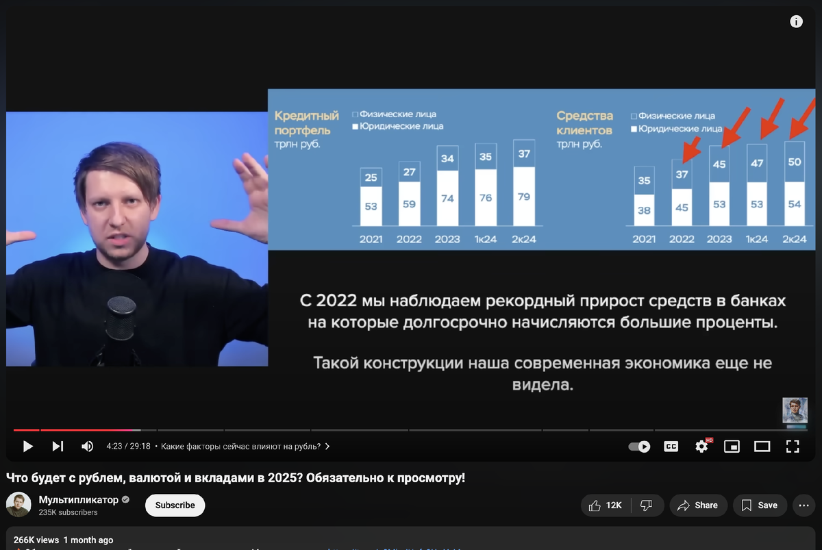 Но в том же видео важным выводом была «рублевая лавина», которая, вероятно, будет сходить в будущем на фоне столь высоких ставок.